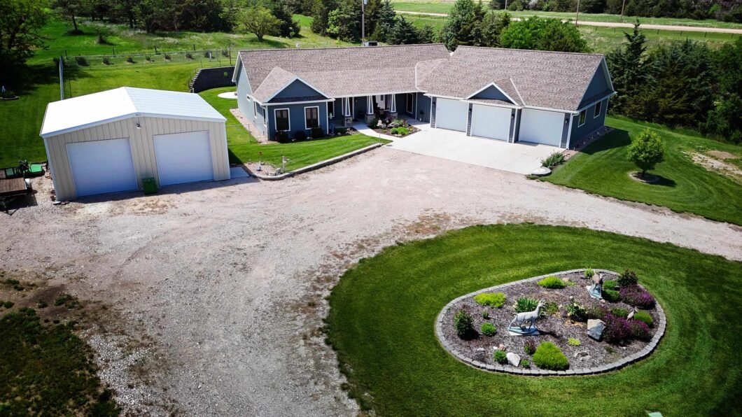 Acreage Living Just Minutes from Kearney! Discover the perfect blend of modern comfort and peaceful country living on this beautifully maintained 3.71-acre property located just northwest of Kearney. The property is surrounded by established shelterbelts, offering added protection from the wind and a sense of privacy and serenity year-round. Custom built within the last five years, this thoughtfully designed zero entry home offers over 1,850 square feet of single-level living, with quality and care evident throughout. Inside, you’ll find a spacious open layout featuring 3 bedrooms and 2 bathrooms, including a large primary suite with an impressive walk-in closet and a luxurious en suite bath showcasing onyx vanity countertops, a generous walk-in shower, and plenty of space to unwind. Throughout the home, durable and stylish luxury vinyl plank flooring pairs beautifully with the quartz kitchen countertops, striking stone gas fireplace, and upscale finishes. The kitchen is both functional and beautiful, complete with a gas range, dedicated pantry, and plenty of room to gather. Convenience continues with a large mudroom connecting to an oversized, deep 3-car garage—perfect for vehicles, tools, or hobbies. In addition, a fully insulated 900 sq ft steel outbuilding provides even more room for storage or workspace. Step outside to enjoy a covered patio overlooking a refreshing pool with a Timbertech brand composite deck—ideal for summer afternoons. The property also includes a chicken coop for those who enjoy raising farm fresh eggs. Built on an ICF foundation for energy efficiency and durability, the home includes a dedicated tornado shelter in the mechanical room, offering added peace of mind. Properties like this, that are so well-cared-for, move-in ready, and so close to town rarely come on the market. Here’s your opportunity to enjoy acreage living with the comfort of modern amenities and the pride of ownership that truly sets this home apart. Schedule your showing today!